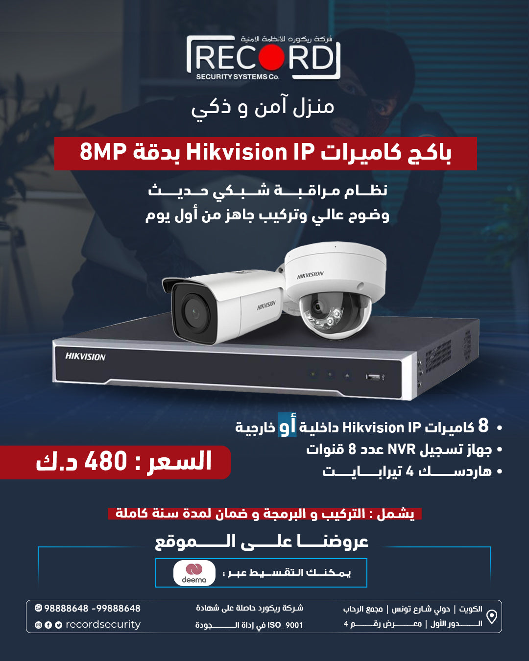 باقه عدد (8) كاميرات اي بي هيك فيجن داخليه او خارجيه (8) ميجا بكسل